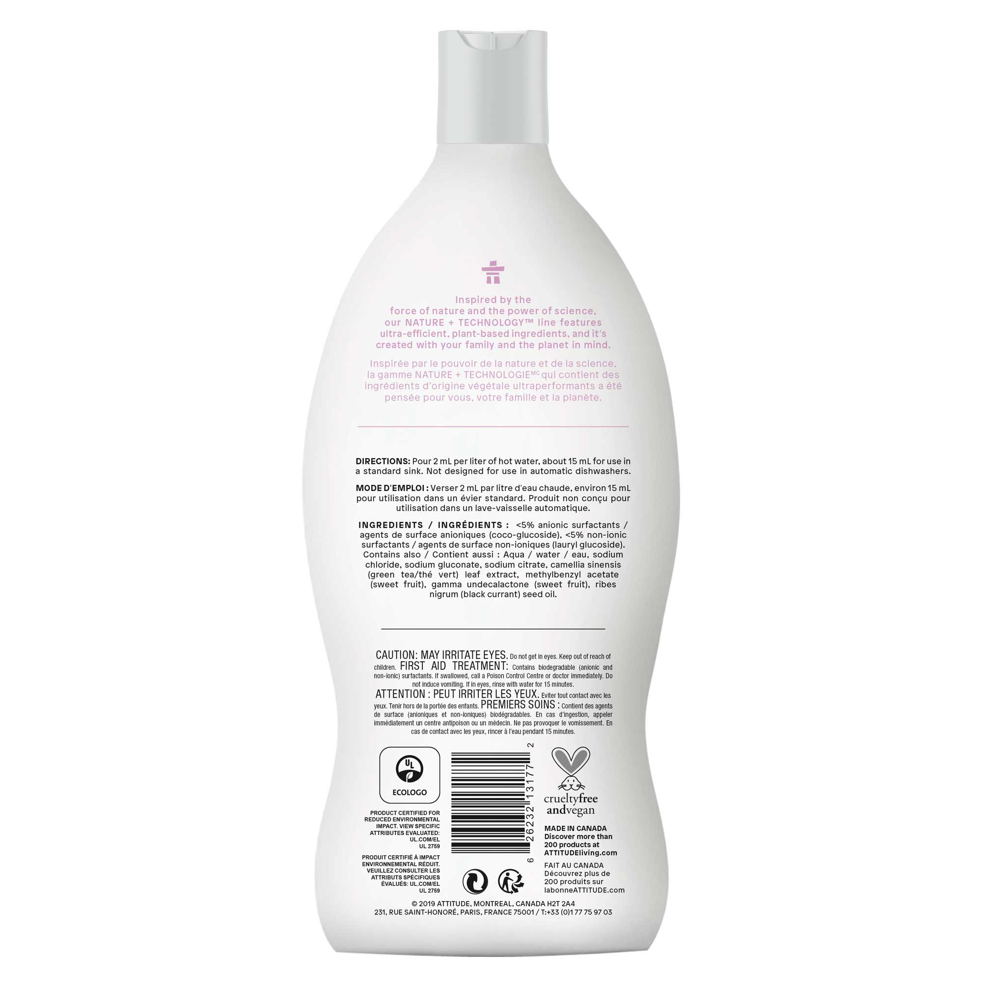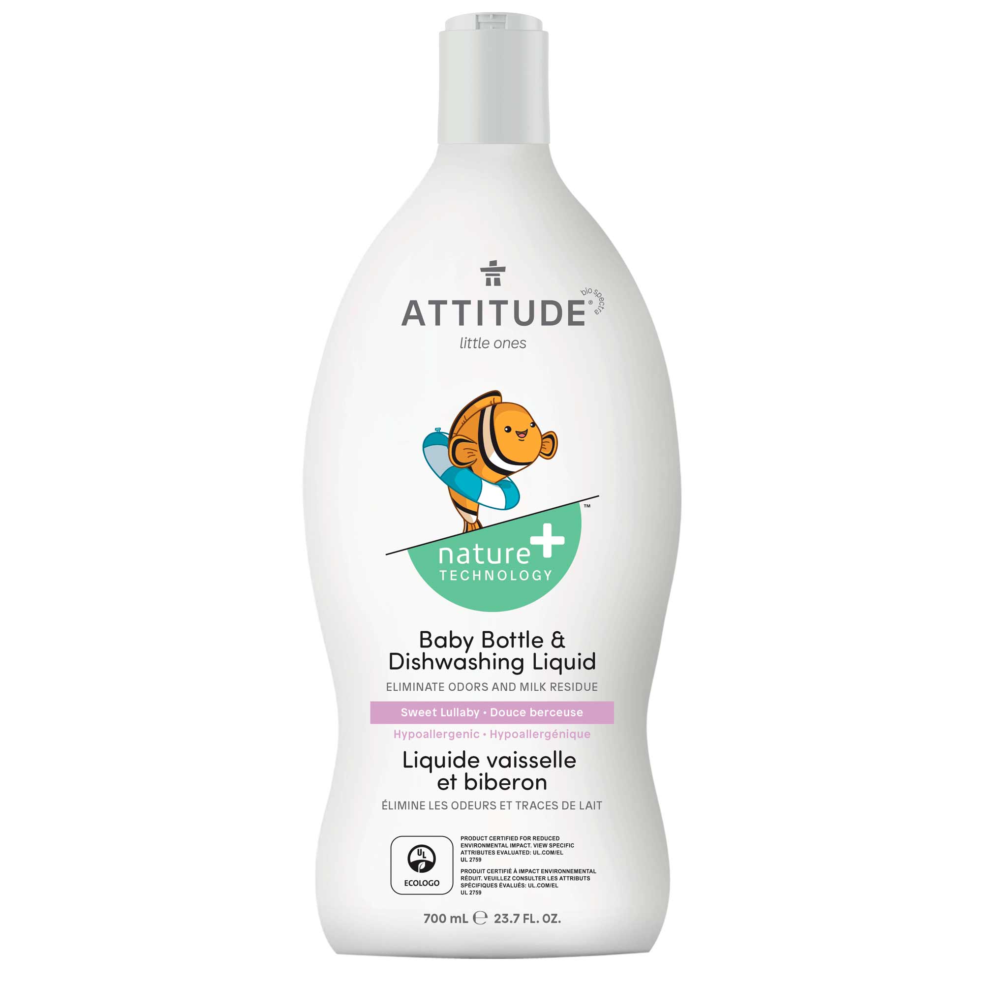 - ATTITUDE™ baby bottle & dishwashing liquid – Sweet lullaby is the ideal choice for washing your baby’s tableware, bottles and other accessories.