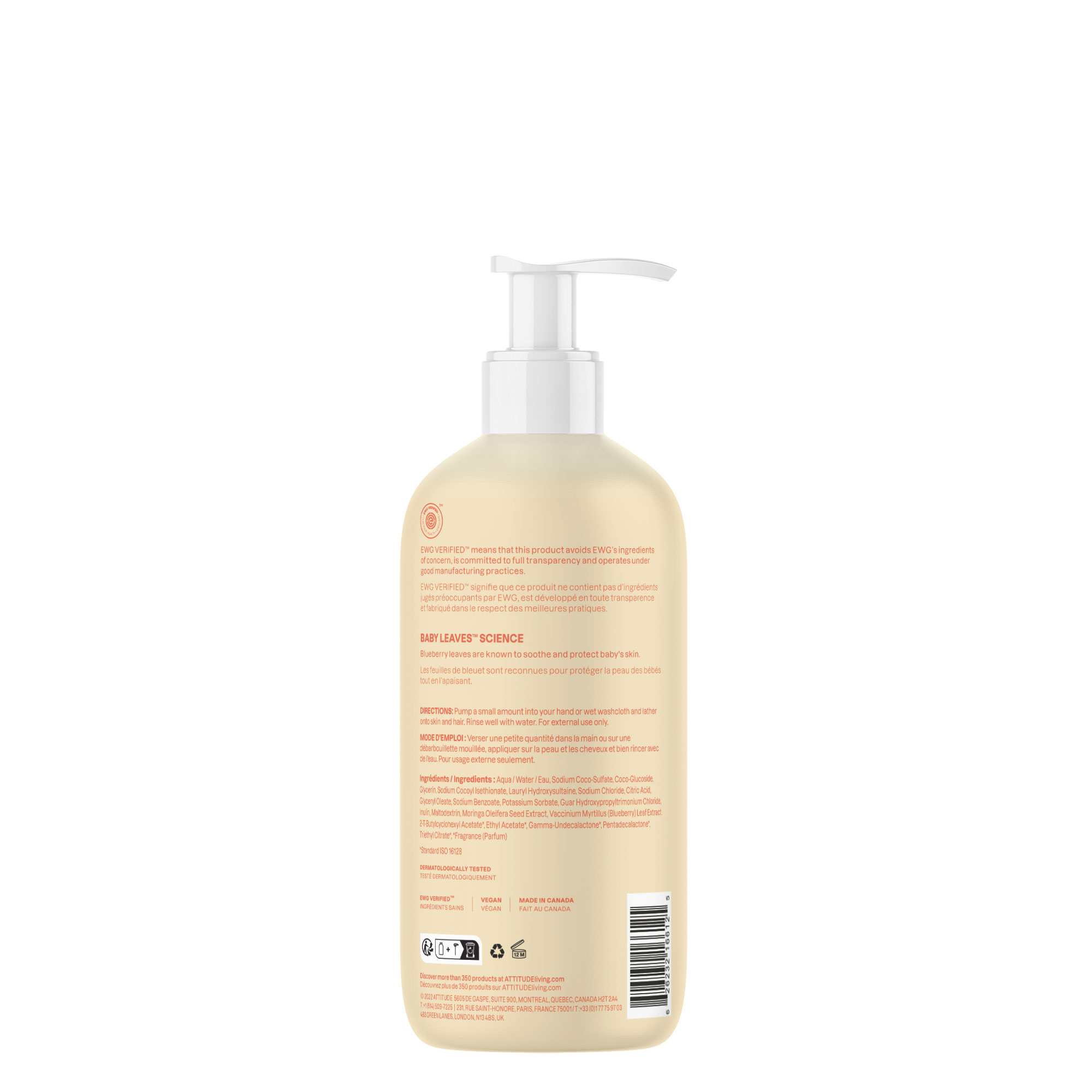 - ATTITUDE™ shampoo & body wash with a delectable pear fragrance is a baby bath essential. Containing 98% naturally derived ingredients* including blueberry leaf extract with soothing properties for dry skin. This dermatologically tested shampoo & body wash leaves skin supple and hair feeling silky smooth. Its EWG VERIFIED™ and vegan formula is gentle on your baby’s delicate skin.