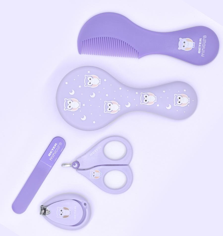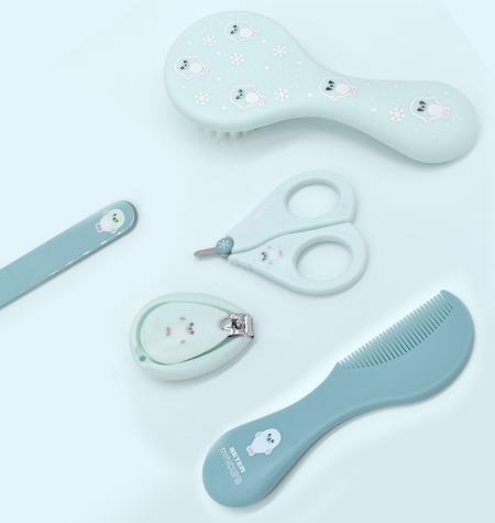 - Enjoy those simple and comforting everyday moments with your baby with this kit to delicately take care of their nails and hair. Contains: tempered glass nail file, nail clipper, special scissors, round tip comb and ultra-soft fiber hairbrush.