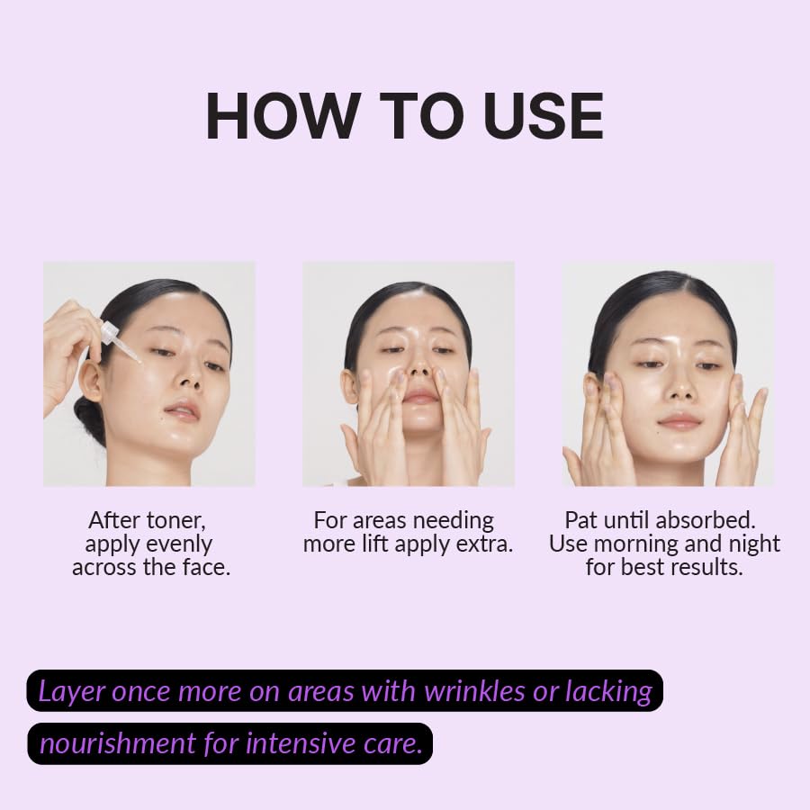 Encapsulated Peptides, Bakuchiol, and Korean Thistle work in harmony to firm, lift, and smooth the skin from multiple angles for a youthful, resilient complexion