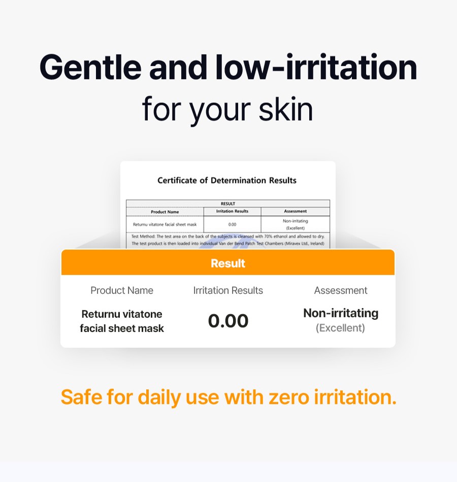 Hypoallergenic and dermatologist-tested, this sheet mask is free from artificial fragrances and unnecessary additives—making it suitable even for sensitive skin types.🍊 [Clinically Proven Results]